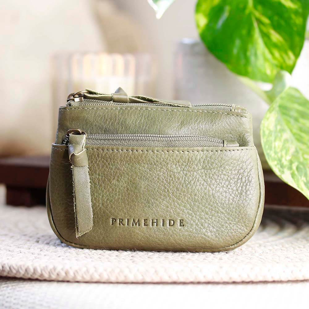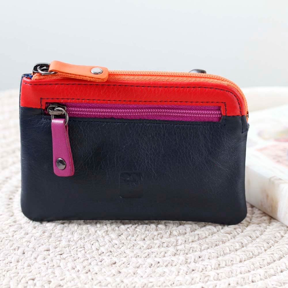 Soft leather multi zip pocket coin purse Front zipped pocket Top zipped pocket with key...