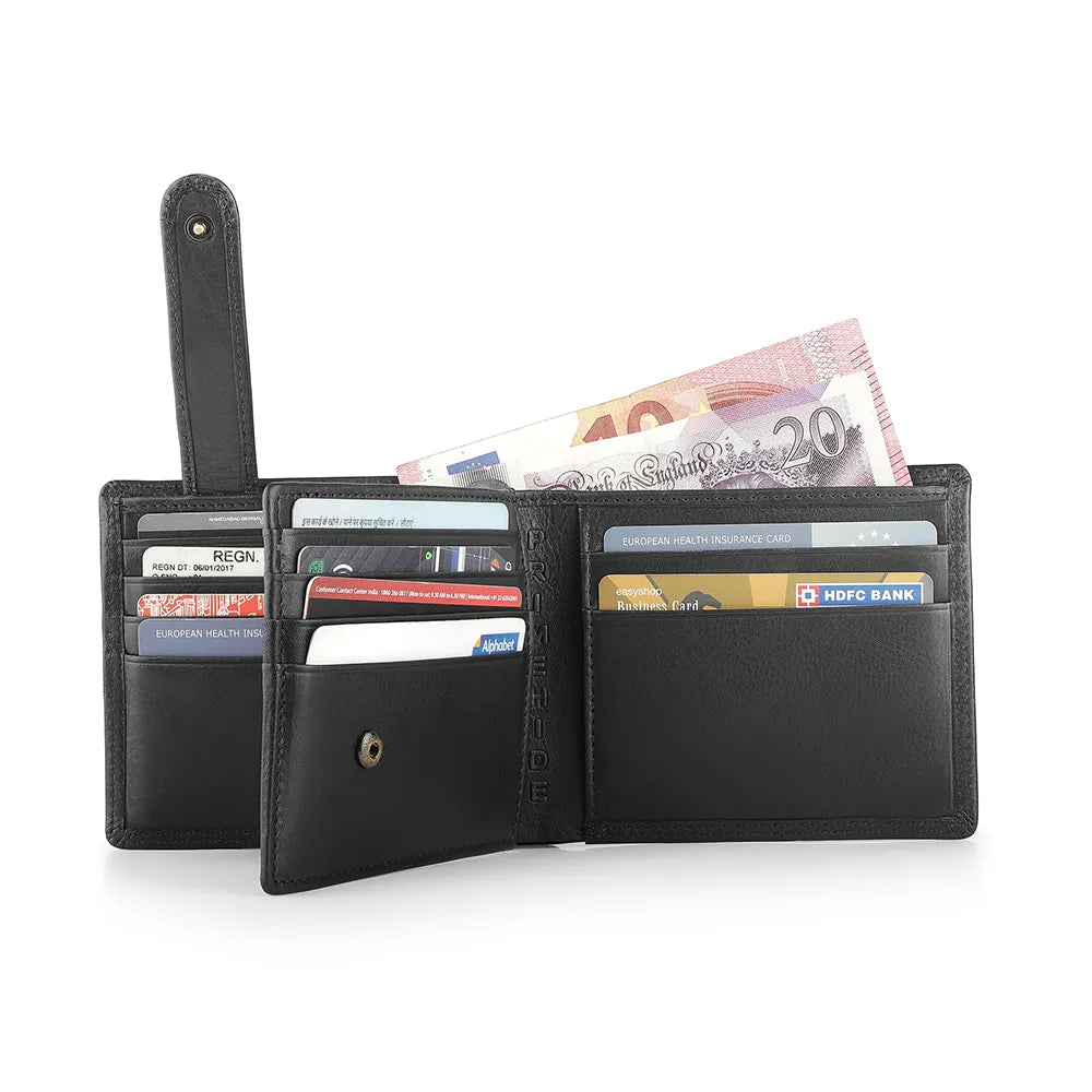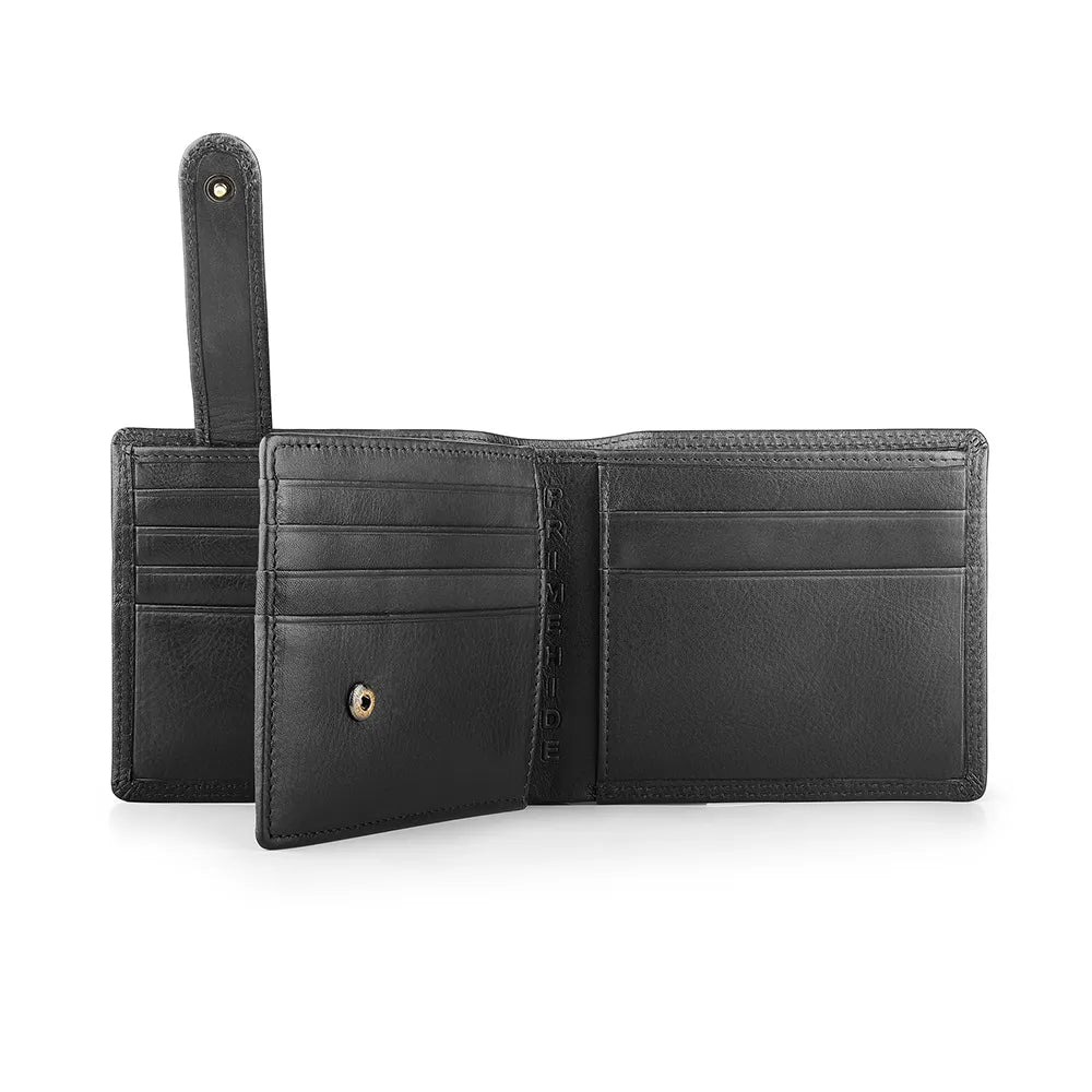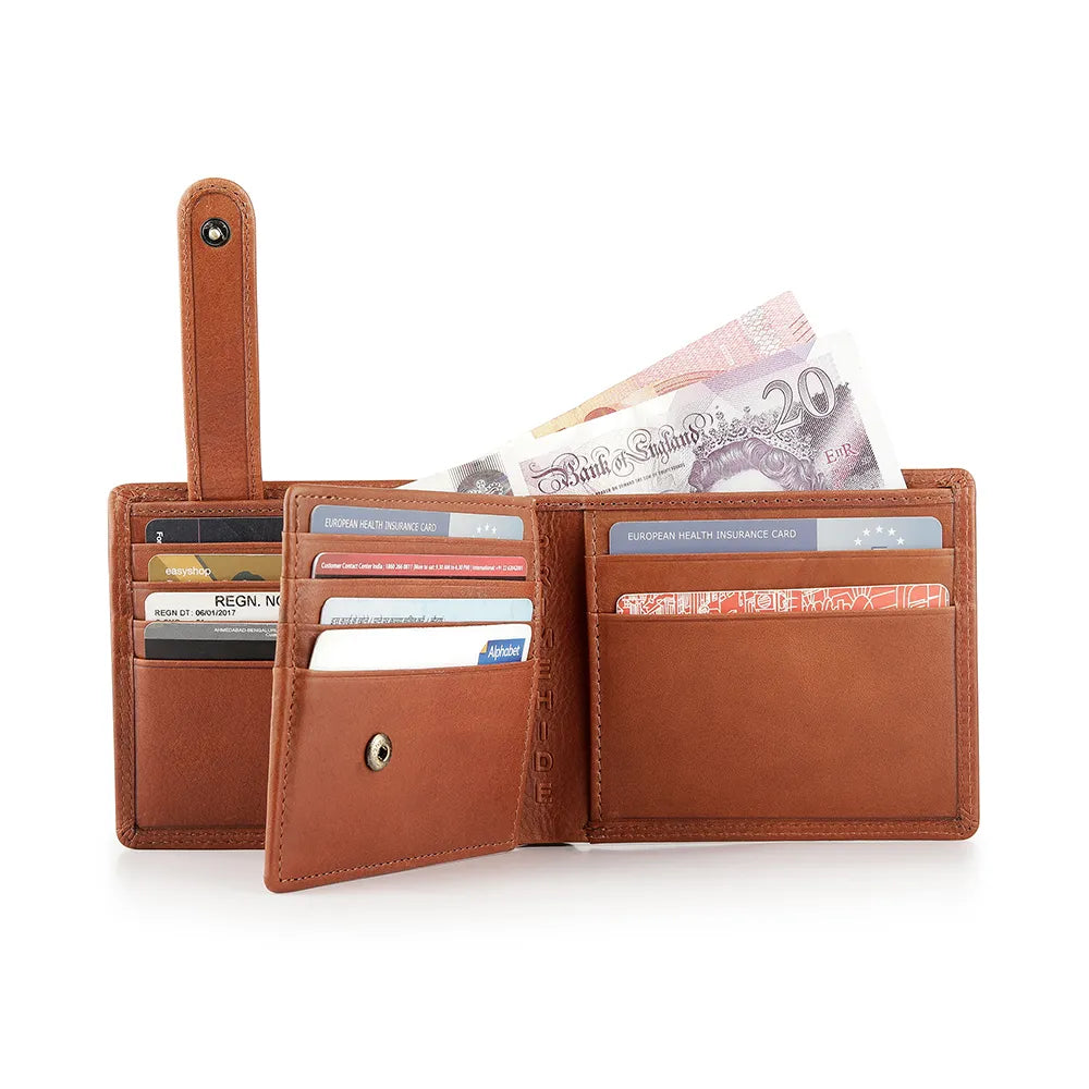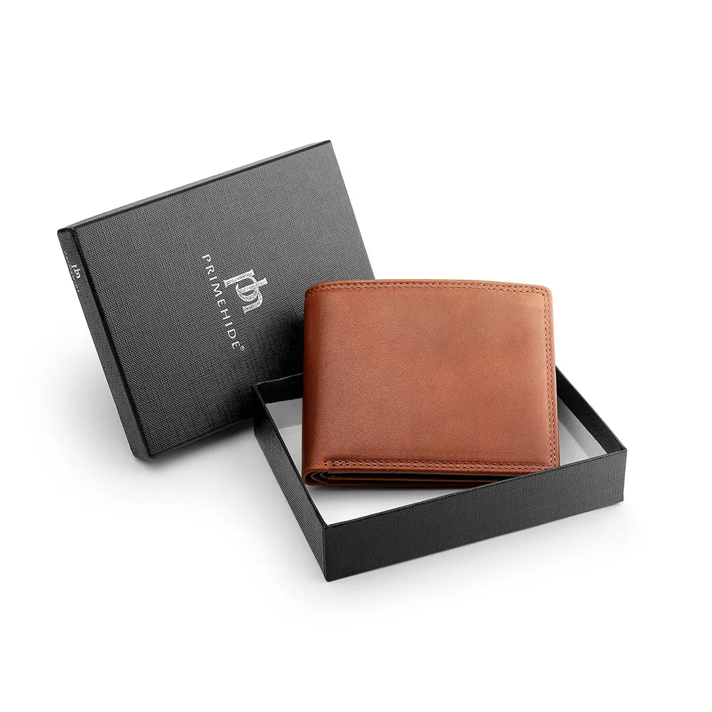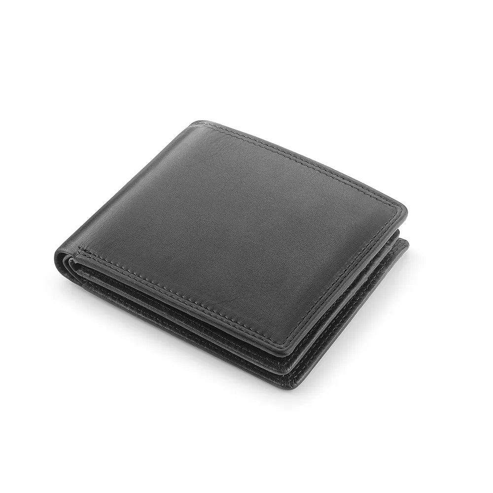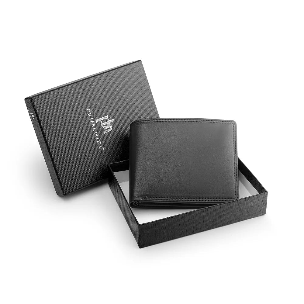 This bifold leather wallet for men by Marcus Leon is crafted from genuine leather and features RFID security for added protection. With card slots, inner slip pockets, a twin note section, and herringbone lining, it’s a practical and stylish wallet presented in a gift box.