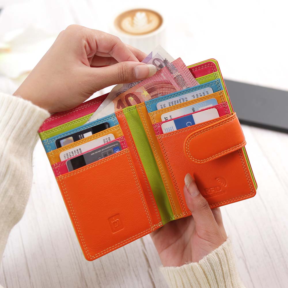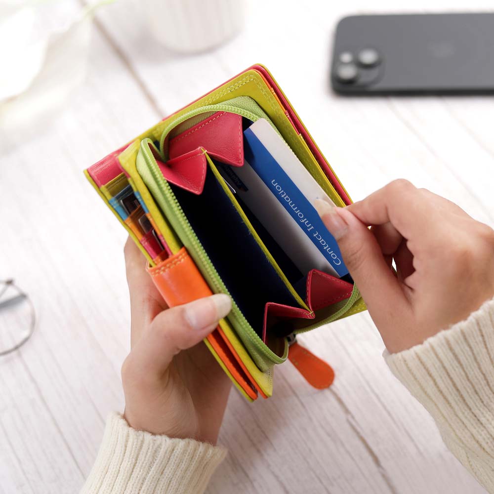 It's not just pretty though. It's genuinely brilliant at keeping you organised. Nine card slots, a window for your ID, two sections for notes, and a zipped coin pocket so you're not scrabbling around for change at the bottom of your bag. Plus it's got RFID protection built in, so your contactless cards are safe from any dodgy scanning.