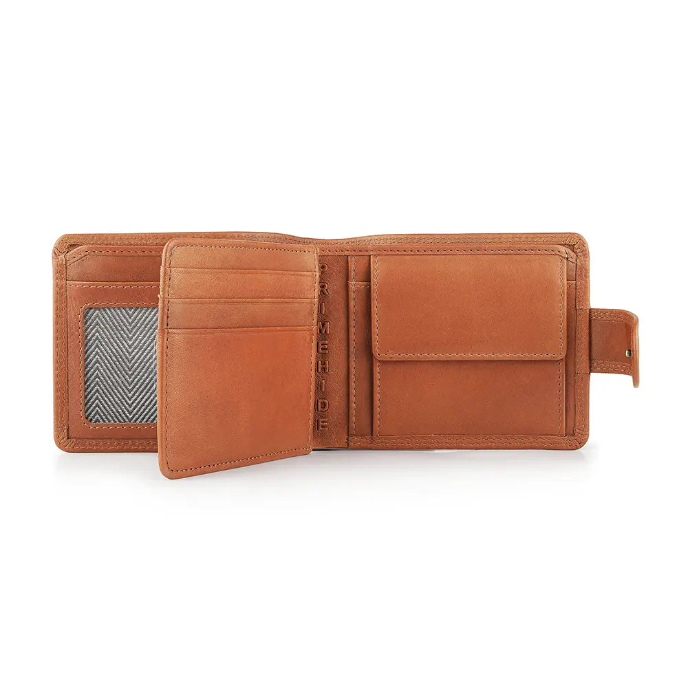 The James Leon genuine leather wallet for men combines premium craftsmanship and practical design. Made from real leather, it features a secure tab closure and RFID protection to safeguard your cards and personal information. With 6 card slots, 2 slip pockets, an ID window, a buttoned coin pocket, and a twin note section, it offers ample storage for all your essentials. The elegant herringbone lining adds a touch of sophistication, and it comes beautifully packaged in a gift box, making it an ideal gift for any occasion.