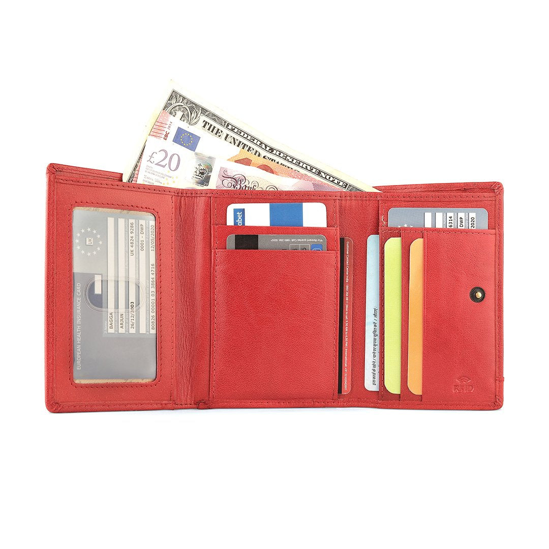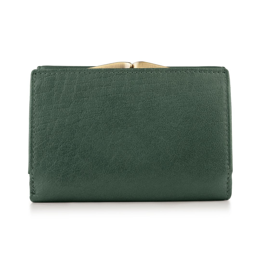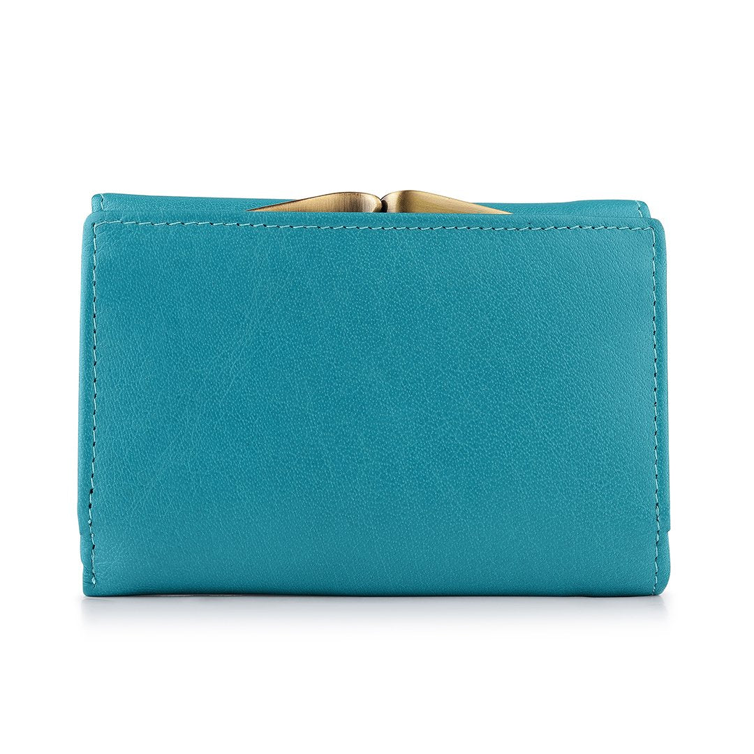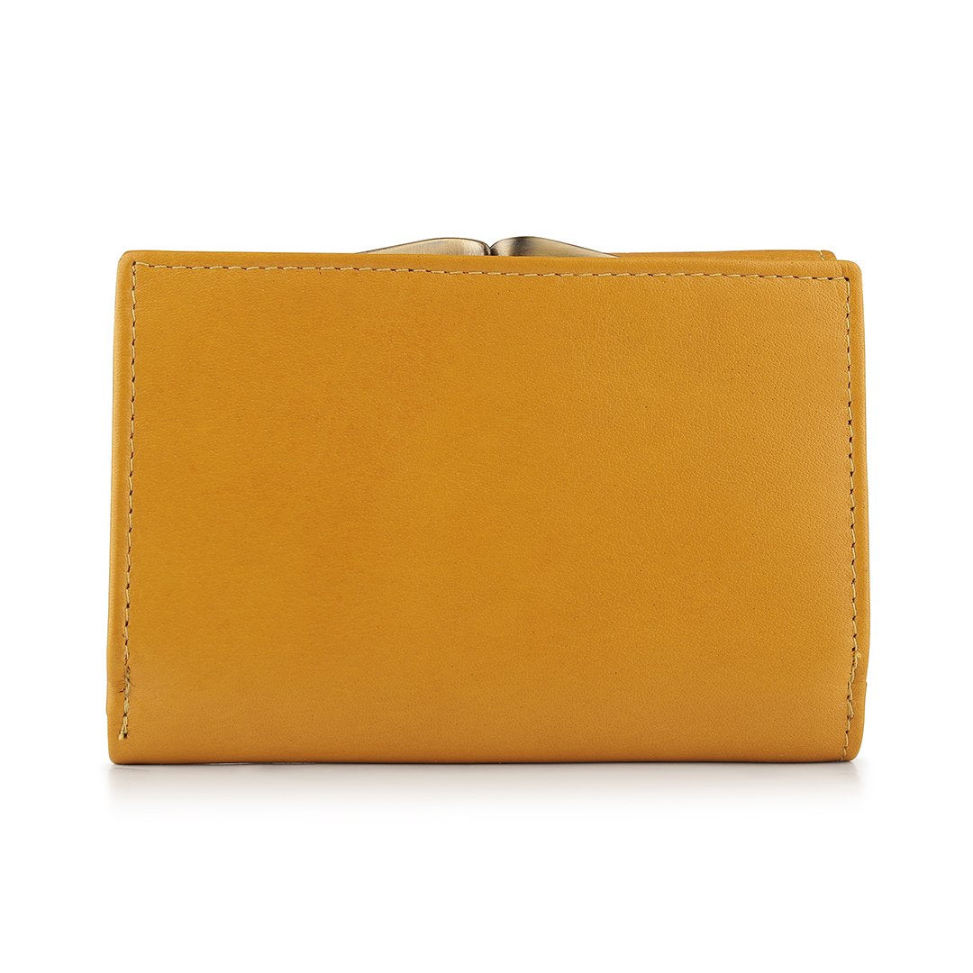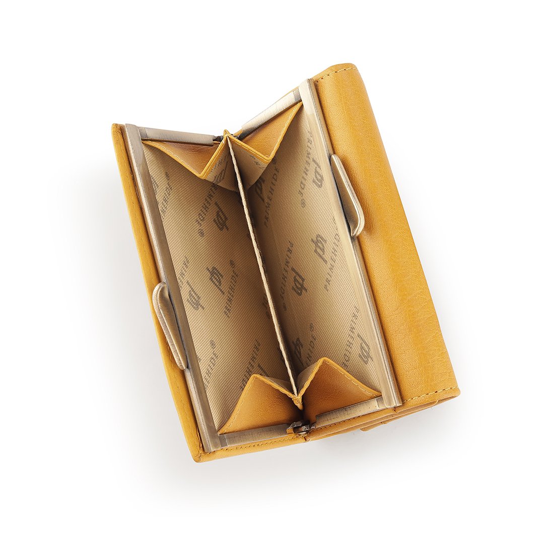 The Velura Clip Frame Trifold Purse is a sophisticated Genuine Leather wallet designed with RFID security to protect your cards. This purse features 5 Credit Card Slots, Additional Slip Pockets, an ID Window, and a spacious Note Section. The classic Clip Frame Coin Section adds both elegance and functionality, making this purse a stylish and secure choice for everyday use.