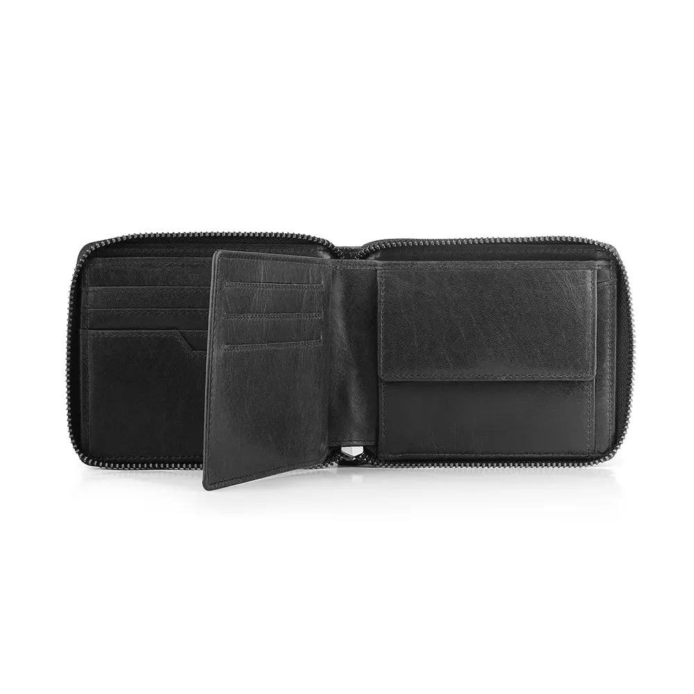The Zip Around Leather Wallet - Carlos Alperto is crafted from Genuine Leather and designed with a secure Zip Around Closure for added protection. It features a dedicated Coin Pocket, multiple Credit Card Slots, an ID Window, and Slip Pocket for convenient organisation. Additionally, the wallet includes Note Sections and RFID Protection to keep your personal information secure, making it both practical and stylish for daily use.